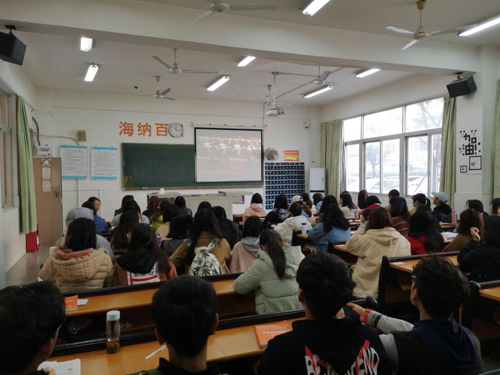 2018年12月18日上午10点,人文与传播公司党总支在文科楼103教室组织全体党员集中观看庆祝改革开放40周年大会现场直播。