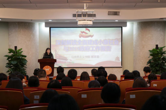 2019年是全面建成小康社会的收官之年,从全国两会看中国改革发展新图景,深入学习全国两会精神,为全面建成小康社会收官打下决定性基础。郭翠翠老师分析了李总理所做的2019年政府工作报告,晒出了2018年工作“成绩单”,2018年中国来之不易的发展成绩令世界瞩目,拥抱2019年,郭老师联系就业、教育、住房等民生热点问题,亮出政府工作报告提出的“十大民生红包”,发展新布局、改革新举措、民生新获得,更加激发了活力与动力,回应了人民期待。我们更加坚信,紧紧抓住重要战略机遇期,凝心聚力办好自己的事情,中国经济高质量发展的道路必将越走越宽。