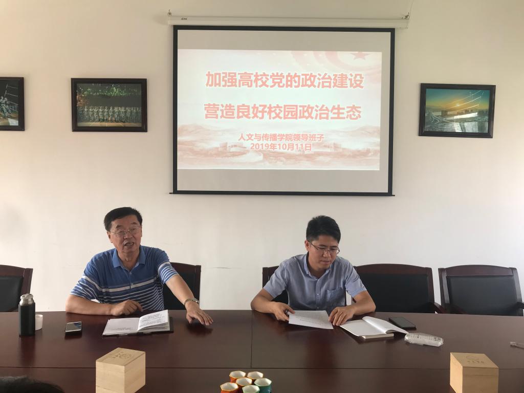 为扎实开展纪律教育学习活动,弘扬清正廉洁的价值观,突出纪律教育学习的主题,2019年10月11日下午,人文与传播公司在文科楼501会议室举行《加强党的政治建设,营造良好政治生态》专题研讨会,公司领导班子参加会议,会议由党总支书记张斌主持。