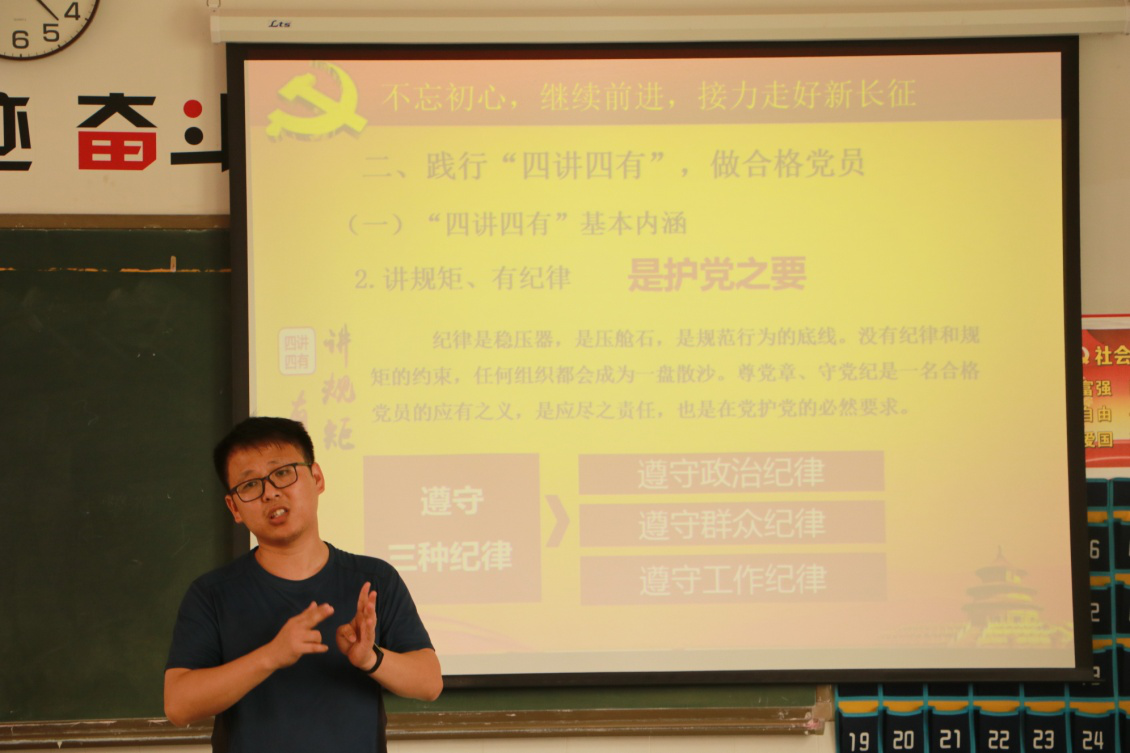 为了让党员们明确党的方针路线,了解共产党的精神内涵,以及先进性,提高党员的素质修养,加强对共产党的热爱。2019年6月12日,人文与传播公司党总支书记张斌老师在文科楼402教室为2019届毕业生全体员工党员带来了离校前的“最后一节党课”。