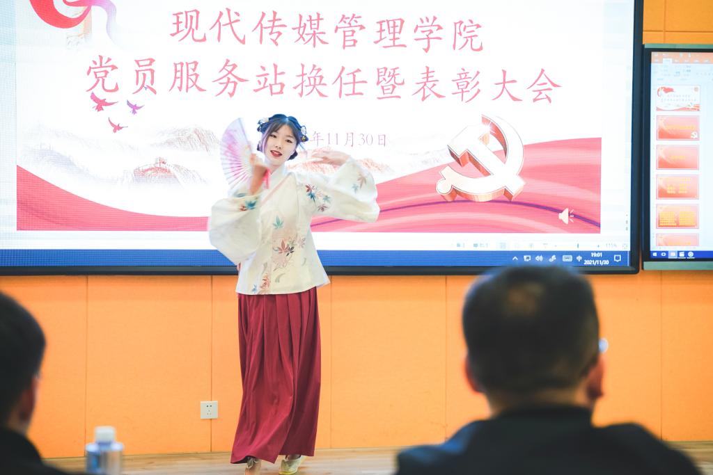 活动伊始,2021级酒店管理专业的张悦同学为我们带来了精彩的古典舞表演,而后播放了20-21学年党服回顾视频,场下所有党员同志们看着过去一年大家共同努力的成果,心中满怀感动。视频中的一帧一画,都饱含党员服务站老干部们的心血,也激励着新干部们在未来不忘初心,越做越好!