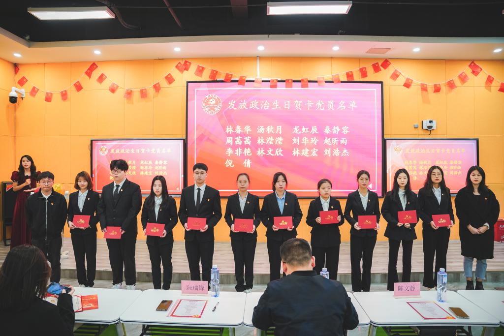 陈瑞锋老师和陈文静老师为入党一周年党员同志颁发政治生日贺卡