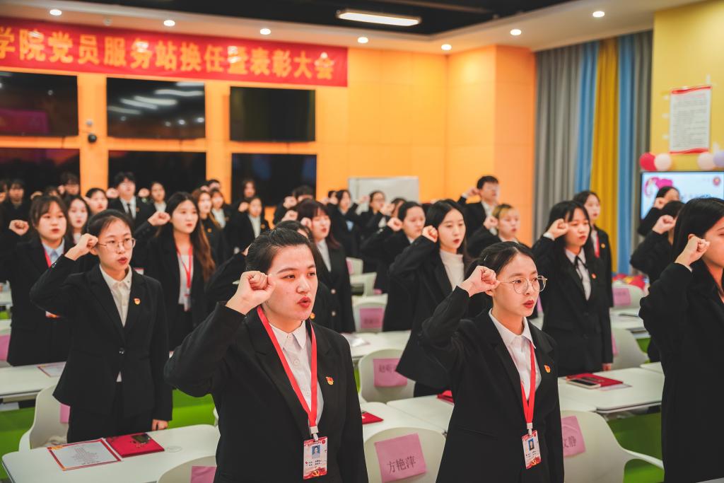 张斌书记带领在座所有党员重温入党誓词,并对本次活动进行总结致辞。首先,张斌书记对本次活动表示了肯定,他提到本次活动对每一位党员服务站的老干部们来说,是十分难得也十分具有纪念意义的。同时,他也对新入职党服的干部们表示欢迎,希望新干部干事们能够将党服“积极为同学们服务”的良好精神传承下去。最后,张斌老师提出“一个党员一面旗帜”,相信在各位党员同志的带领下,公司党员服务站会发展的更好!