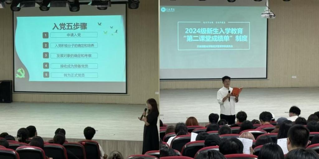 两名老师从党团知识概述、党团基础知识普及等方面,引领新生深刻理解党团知识的重大意义。为新生阐释党团基本理论、历史脉络与组织架构,及其在社会发展中的核心角色。通过老师的讲解,不仅让新生对党团知识有了更全面深入的认识,还点燃了他们的爱国热忱,增强了社会责任感。她鼓励同学们积极参与党团活动,提升思想政治素质,同时教导同学们了解党的历史,传承发扬党的光荣传统与优良作风,为新时代培育优秀青年贡献力量。
