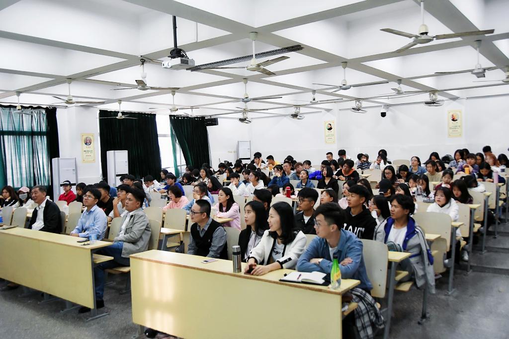 刘岩松主编首先展示了过往的照片,以回忆的形式叙述了自己这三十四年从事媒体行业的道路,让大家从宏观的方面了解到以往传媒人工作的条件。刘主编结合自己的经历与感受阐述了自己的想法,进而让师生们更加直观地了解了过去媒体人的心路历程,现场的同学老师纷纷表示收获了许多心得与体会。随后又特别提出,当今从事媒体行业工作者之所以能够成功的因素除了热爱和善良以外,更重要的是要有良知和责任,其二者是能否成功的重要标准。最后刘教授向在座的老师员工表达出自己心目中的优秀新闻工作者的模样,以此传达了他对未来传媒工作者们的期许与期望,希望大家可以成为自己心目中的最好的自己。