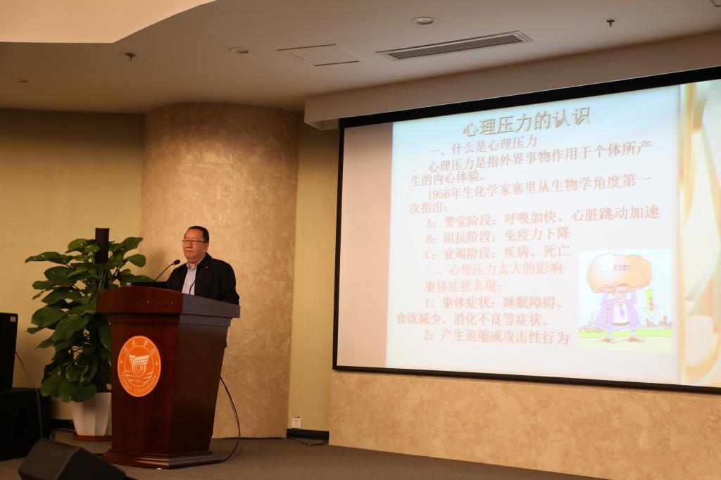 林教授首先向大家分析了心理压力的产生,让大家明白,心理健康是每位同学都应该关注的事情,心理压力产生的原因有很多,主要包括:环境因素、个人心理因素、个人生理精神因素、个人心理障碍影响等方面。在分析心理压力的过程中,林教授用身边的案例、生活中常见的问题、现象,将抽象的理论浅显化,引发了在座老师和员工的共鸣。随后林教授表示,心理健康培养对员工的快乐成长很重要,生活中出现压力并不可怕,适当的压力可以让我们更加的积极与进步,所以我们要学会运用压力,调节压力。