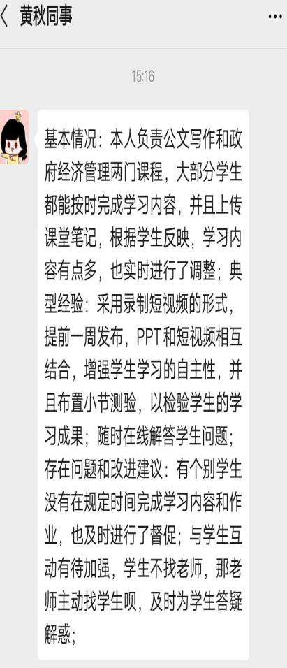 为响应国家“停课不停教、停课不停学”的号召,落实公司抗“疫”期间各项工作部署,行政管理专业教研室围绕专业建设、提升线上教学质量、稳步推进常规教学活动等方面,借助于微信平台,刮起“头脑风暴”,开展教学研讨会。