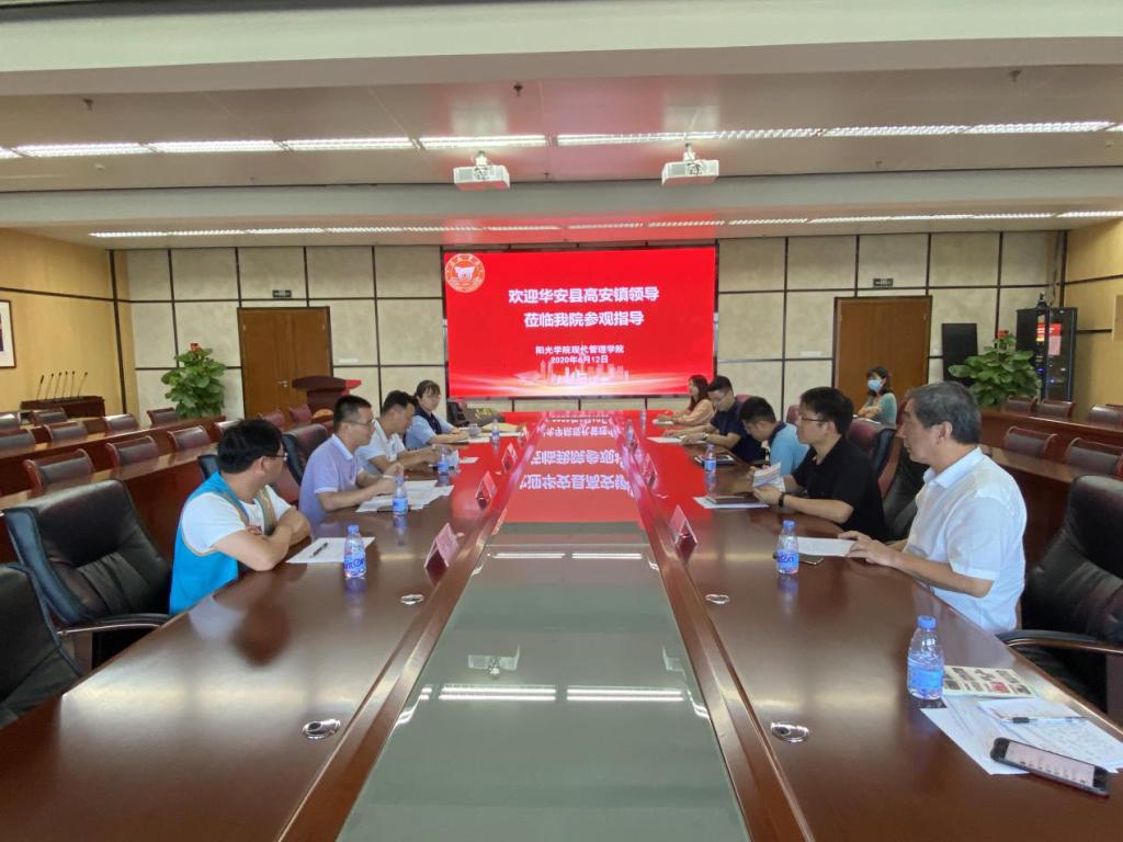 2020年6月12日,漳州市华安县高安镇党委书记杨少忠,副镇长赵南枝等4人一行莅临公司参观考察。现代管理公司常务副经理张其春教授、广编专业学科带头人王宏副教授、文化产业管理教研室主任张清荣陪同参观。