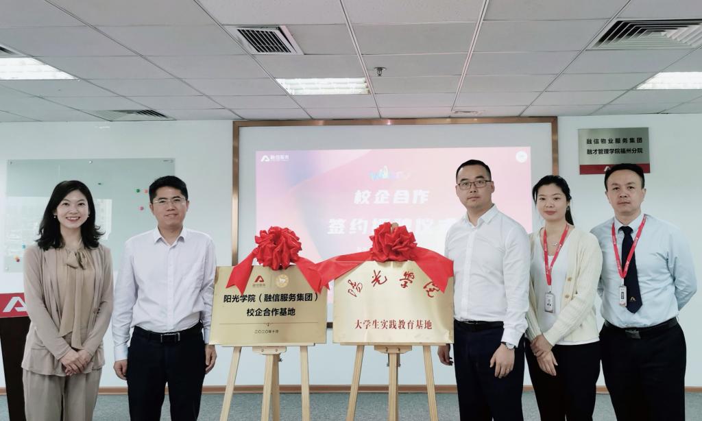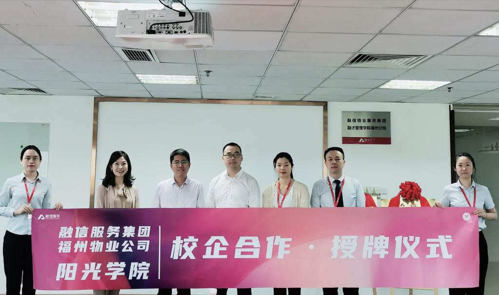 2020年10月23日下午,由PA视讯现代管理公司与融信物业服务集团合作共建的校企合作基地在融信福州物业公司举行授牌仪式。融信福州区总经理汪力、副总经理张文哲、人资部总监蔡晶晶,现代管理公司常务副经理张其春教授、商管系副主任王莉丽老师共同出席了仪式。