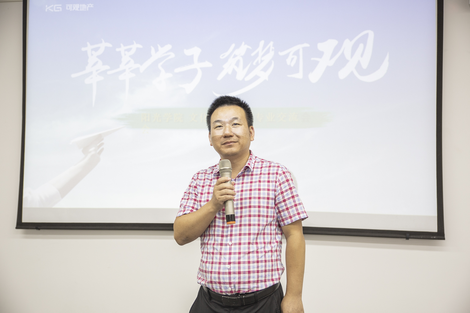 可观集团人力资源王昕瑞总监对公司师生的到来表示热烈欢迎,从公司简介、工作氛围、培训体系、职业晋升和薪酬福利五个方面向大家介绍了可观地产的发展情况。王总监还通过vlog展示了可观集团良好的工作氛围和员工生活环境。