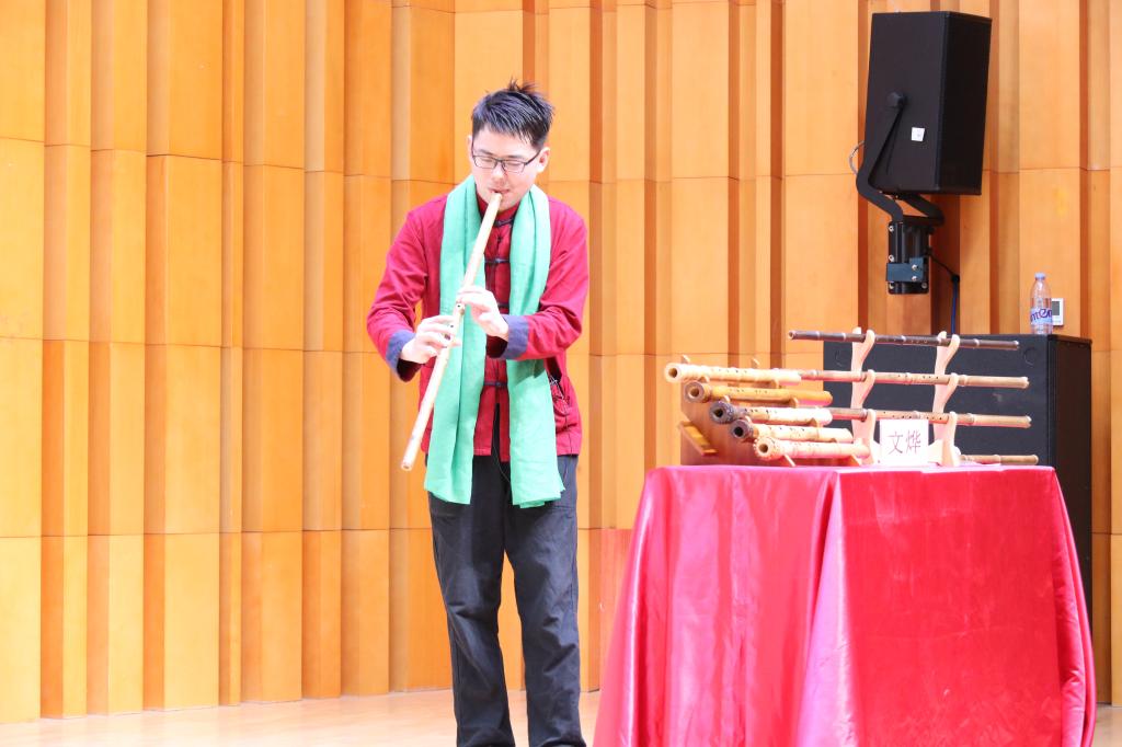 古风雅致,惟妙惟“箫”,吴文杰老师首先讲述了箫的历史渊源、发展历程,围绕古琴、洞箫两件传统乐器的起源、发展、传承与现状等方面展开讲解与鉴赏。吴老师表示洞箫作为我国最古老的乐器之一,自远古时期产生至汉唐改良成型,更加具有传统文化的代表性。洞箫取材于竹,其形笔直,声悠然的特性,自然和一些清高正直,飘逸潇洒的个人性格产生联系,因此也产生很多独特的曲目和特殊的文化。