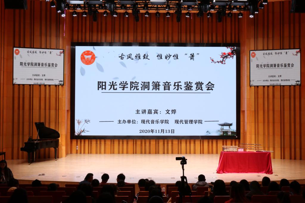 为传承和弘扬中华优秀传统文化,感受中华传统民族乐器的文化艺术,2020年11月13日下午,由现代管理公司与现代音乐公司共同主办的洞箫音乐鉴赏会在音乐厅举行。