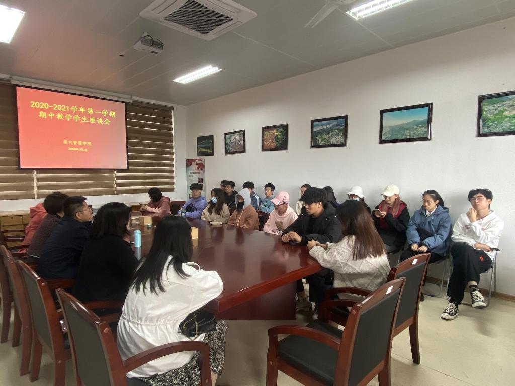 为了了解员工学习情况,提高公司课堂教学质量与教学管理水平,2020年12月4日中午12:30,现代管理公司在文科楼501召开2020-2021学年第一学期期中教学员工座谈会。出席座谈会的有现代管理公司经理张其春教授、经理助理谢苗苗副教授、各年级辅导员及各年级24位员工代表,会议由教学秘书邱菊英老师主持。