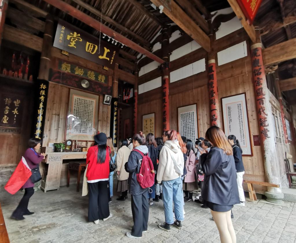随后前往罗峰村,这里有魏氏祠堂和红色基地,祠堂里面十分雅致,阁楼错落有致,门上的雕刻栩栩如生,往里面走,还有一口古井,这口井养育着魏氏后人们,井水源源不断,象征着魏氏家风生生不息。在这里同学和老师们一同感受了魏氏家风。其所传达的善良、诚信、大爱等等,与我们现在社会价值观高度契合。