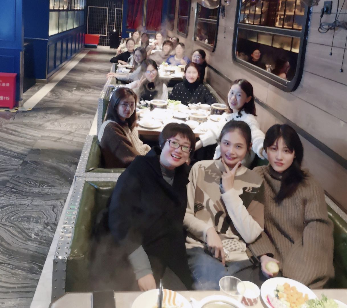 在结束上午的工作后,公司女教职工在党总支张斌书记的带领下前往聚餐地点,大家都表示吃得非常开心满意。