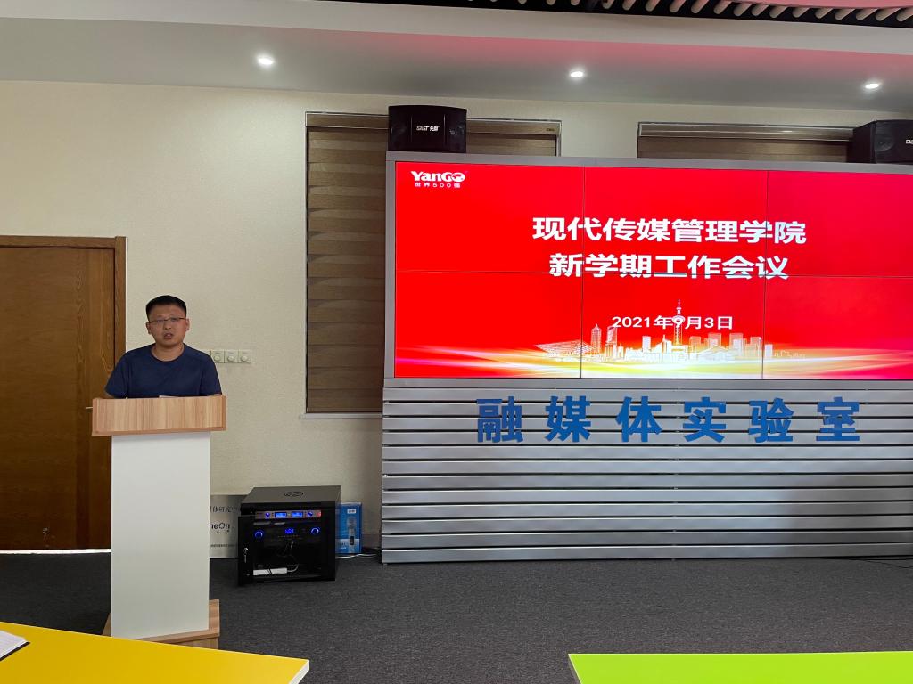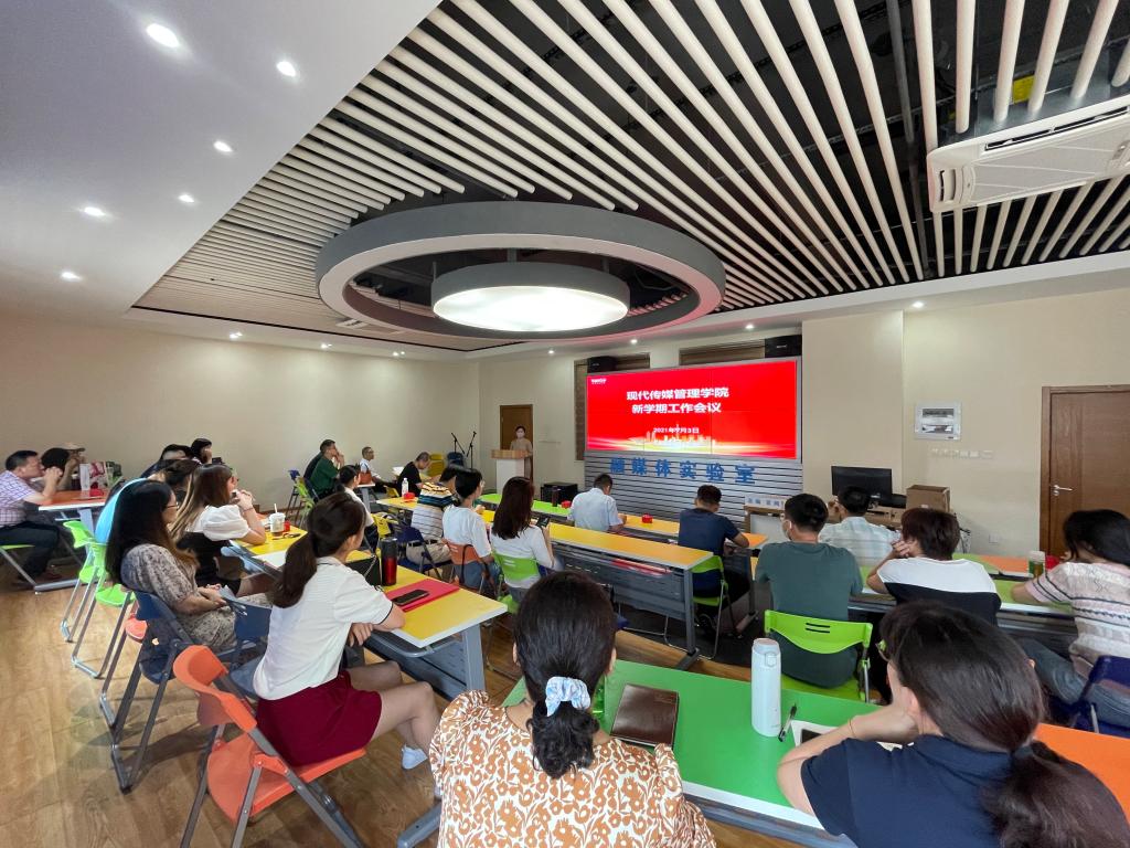 2021年9月3日下午,现代传媒管理公司在行政楼融媒体中心召开新学期全院工作会议,传达公司新学期工作会议精神,安排部署公司新学期工作任务。公司经理张其春教授主持会议。