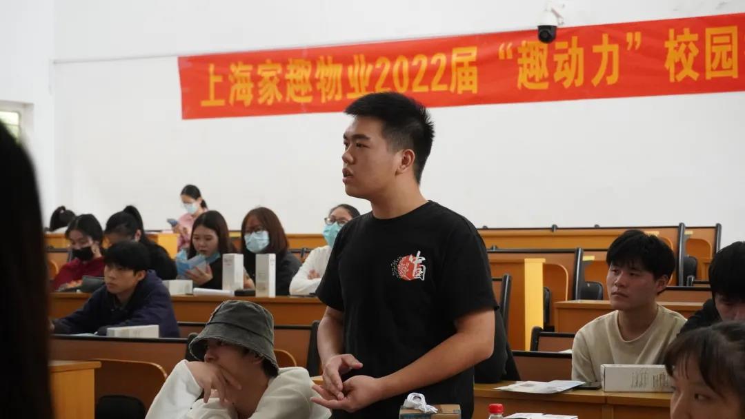 在现场,家趣物业集团的HR进行了细致的演讲。他们向应届毕业生们介绍了行业发展状况,还有家趣物业集团的企业简介,行业殊荣、业务板块、发展状况、招募条件,以及家趣物业发展的“趣动力”管培生计划等。