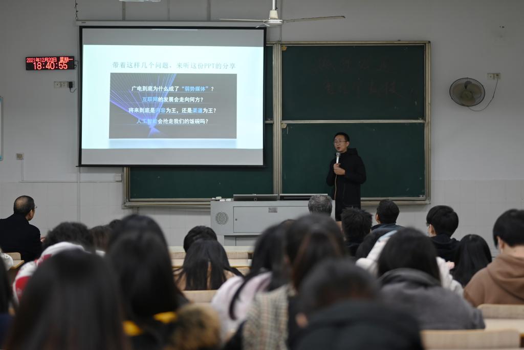 2021年12月20日,公司广播电视编导专业邀请到了福建省广播影视集团融媒体资讯中心编委、网络部主任福建省网络广播电视台副台长唐征宇开展《融媒体短视频拍摄制作》专题讲座。公司张其春经理、广播电视编导专业学科带头人王宏老师,以及卢文兴、黄琳老师参加。