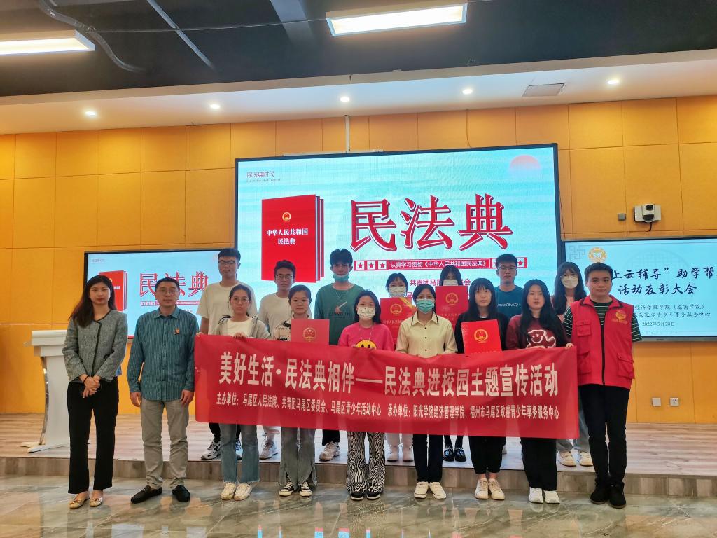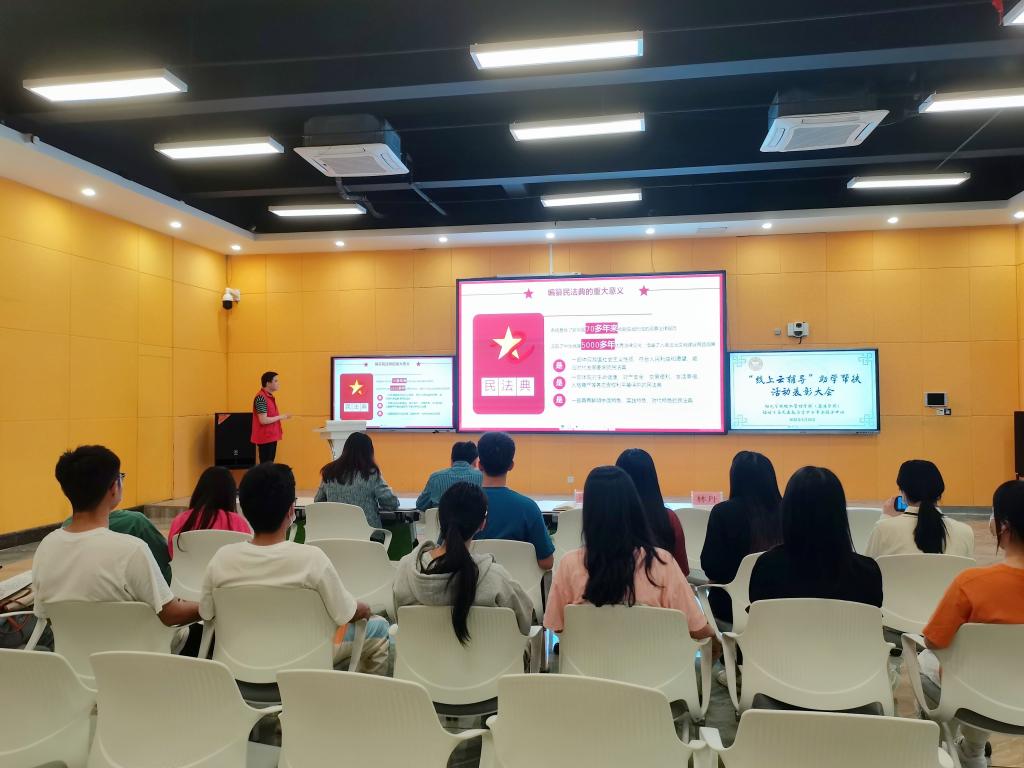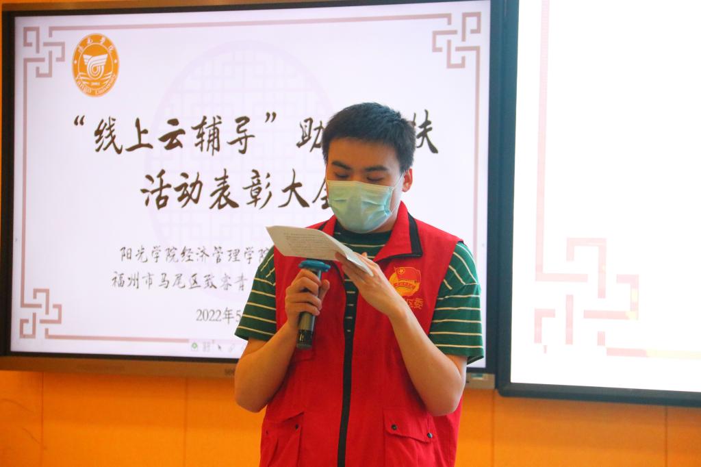 会上,陈文强老师首先对青年志愿者在此次“线上云辅导”助学帮扶活动中发挥的作用给予充分肯定并表示由衷感谢,同时勉励志愿者们在今后的工作中,一如既往地积极参加志愿服务,诠释志愿者的责任和担当。随后,陈文强老师与陈振伟老师一同为18名青年志愿者们颁发青年志愿者证书,并寄语广大青年志愿者在志愿服务中,实现大我、服务大家;更好地成就自我。最后,陈文强老师还向在座的志愿者们普及了民法典的相关知识。