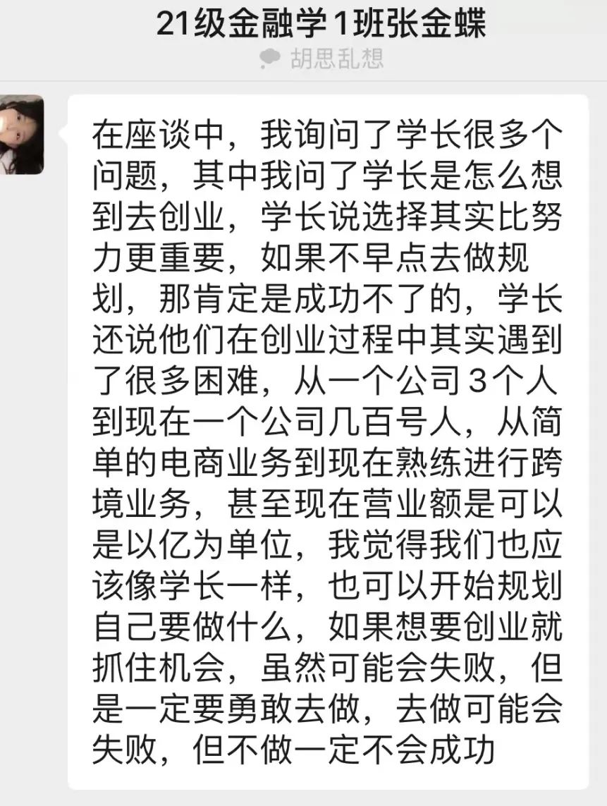 “你们要多去表达,多去尝试要找到兴趣但是不能忘记好好学习,努力向上”“要学会放宽视野要多去接收不同的信息把握机遇才能更好的为自己的未来铺路”。