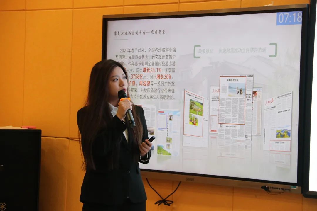 参赛团队按照抽签顺序依次进行项目展示,各团队思想创新,条理清晰,形式新颖,充分彰显了“创新、创意及创业”的赛事风采;赛场氛围浓厚,现场观众全神贯注,将“三创”精神发挥到极致。