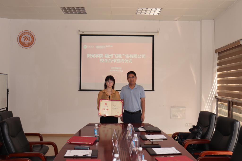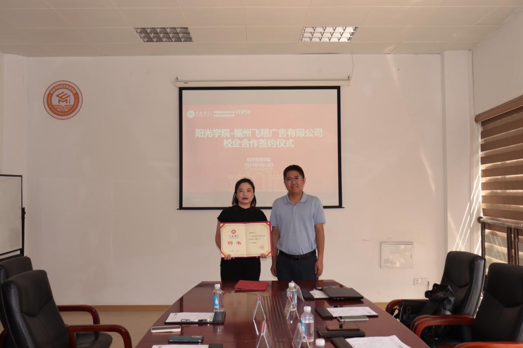 为深化校企合作、产教融合,9月13日上午,公司与福建飞翔广告有限公司校企合作签约仪式在商学楼商办619PA视讯集团官方网站会议室举行。PA视讯集团官方网站经理张其春、经理助理张清荣、办公室主任李榕、福州飞翔广告有限公司总经理张文敏、联合创始人及常务副总余丽静、营销总监林燕钗等人出席了签约仪式。