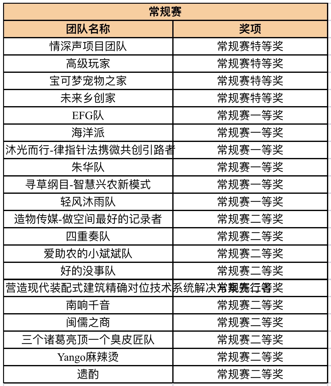 获奖队伍