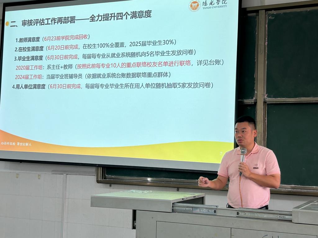 随后,王胤书记针对教师满意度、在校生满意度、毕业生满意度和用人单位满意度四个满意度的全面提升工作进行了专项部署,确保工作到岗、责任到人、全员参与,提高工作的针对性和有效性。同时,王胤书记向与会教师介绍了公司毕业班就业情况,督促各系负责人和辅导员做好就业保障工作,此外,进一步明确2025年公司招生目标和任务安排,动员全体教职工积极参与招生宣传工作,助力公司更好发展。
