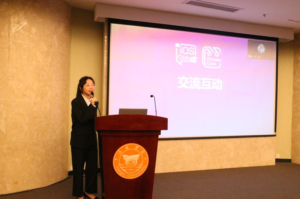 随后,苹果教育两位行业专家在线上为现场领导师生开展专题介绍。刘毅经理介绍“苹果进校园”的故事,旨在培养老员工创新理念,为员工们提供平台资源和专业指导,使员工创意得以尽情发挥。专业培训讲师刘伯文先生介绍Student Clubs的主题活动和合作机遇。他指出,高校员工可以通过俱乐部自主活动、交流互助,碰撞创新逻辑的火花,鼓励更多阳光学子积极参加移动应用创新大赛,锻炼创新应用能力,成就自我。“PA视讯iOS Club”“PA视讯iCreate Club”两个俱乐部的社长也上台分享。连文颖同学表示未来将会在iOS Club开展多项丰富多彩的活动,为PA视讯的苹果爱好者提供一个相互交流、共同进步的平台,希望更多有兴趣的同学在iOS Club中有所收获,创造属于自己的一片天地。曾越同学认为参加iCreate Club可以培养员工们自主创新能力,并收获源源不断的乐趣,希望俱乐部在未来因为更多人的加入而大放异彩。听完分享后,台下员工积极提出问题,现场互动气氛活跃。