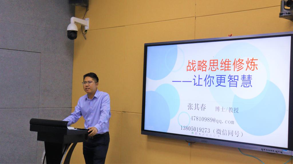 仪式初始,党总支书记林辉宗老师介绍孵化营总体安排。对公司高薪孵化营开班给予大力支持;对“高薪孵化营”的学员们提出希冀:开班所带来的不只是专业的知识,还有宝贵的机会,望学员们可以学有所获,成就高薪。高薪孵化营的初衷是为了学员们更好的面对未来职场生涯,助力学员们在求职人群中脱颖而出。经理张其春教授围绕战略思维主讲高薪孵化营第一课,为学员们指明方向、增强信心、发现机遇,对助力学员们在未来职场中成就闪闪发光的自己进行思维构建。
