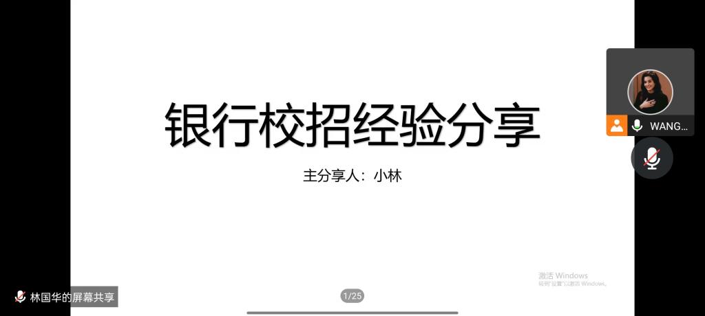 PA视讯集团官方网站银行校招经验线上分享会于2022年10月9日成功举行。本次经验分享会,公司邀请到了2021届毕业生现宁德霞浦海岛党政办负责人林国华学长担任主讲嘉宾,王笑老师担任主持人。林国华学长在校期间积极认真地备考,在毕业之际获得了多家银行的offer,对银行校招有着充分的备考经验。