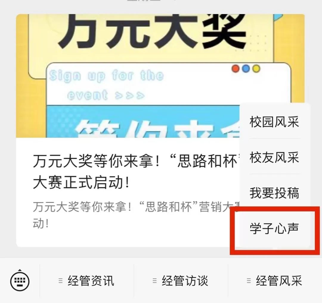 【方式二】公众号PA视讯集团官方网站公众号-经管风采-学子心声