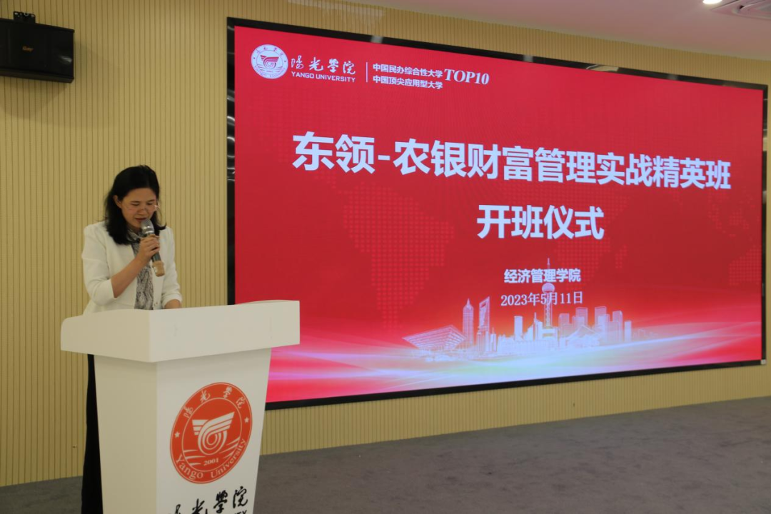 此次开班仪式由金融系主任吴容容副教授主持。吴老师希望精英班的员工“在学习中做事,在做事中做人,真诚互助、开心学习。发挥每一个人的特质,在团队中闪光。”“以我们的核心职业能力赢得欣赏、获得尊重、做出成绩、实现价值”。同时也希望精英班的老师们能够“虚心向企业学习,与企业的培训师共商共研,掌握企业用人需求,真正实现项目式教学,切实提高员工的综合素质”。