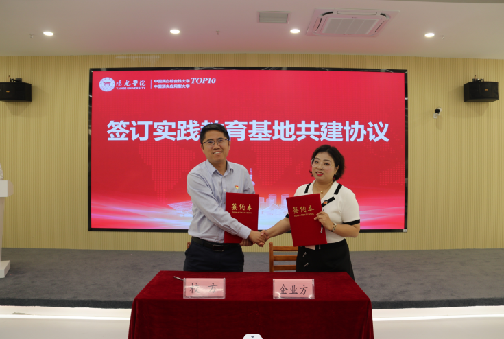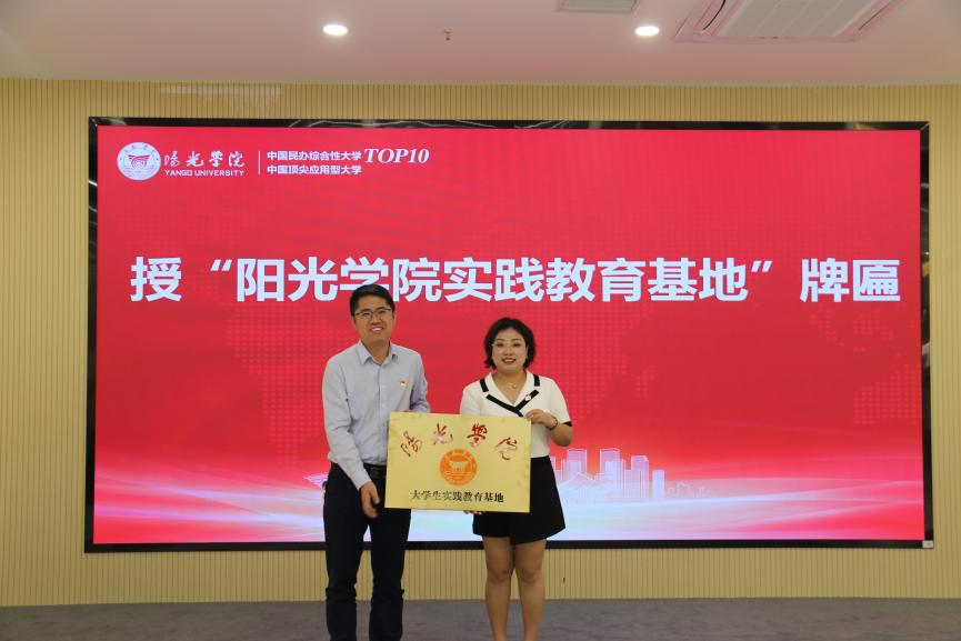张其春经理和王芳总经理签订实践教育基地共建协议并颁发PA视讯实践教育基地牌匾。