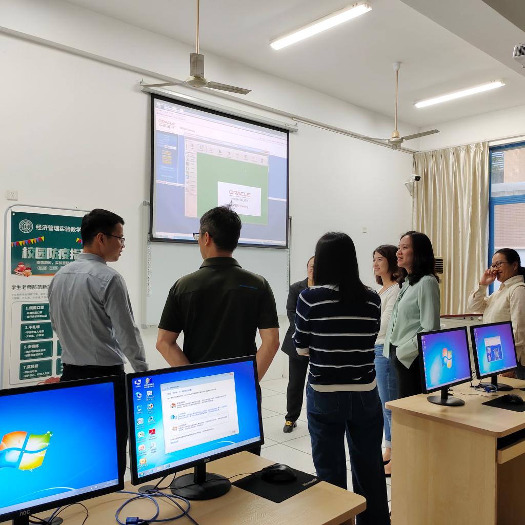 随后,旅游系系主任兼酒店管理专业负责人高玲老师分享了闽江公司酒店管理在人才培养、实验室建设、人才招聘等的具体制度和措施。双方还围绕产学研协同育人机制、学科竞赛、考研升学、校企合作、第二课堂等进行深入交流。会后,调研组一行在高玲老师的陪同下参观了闽江公司酒店管理专业实验室。
