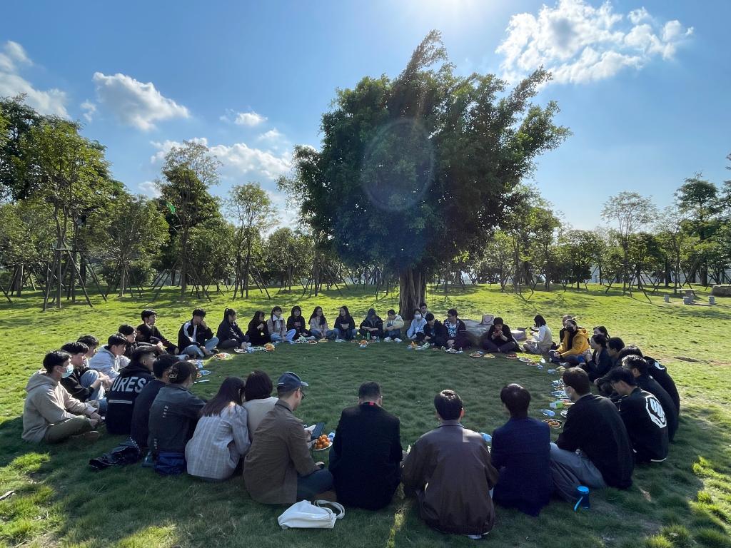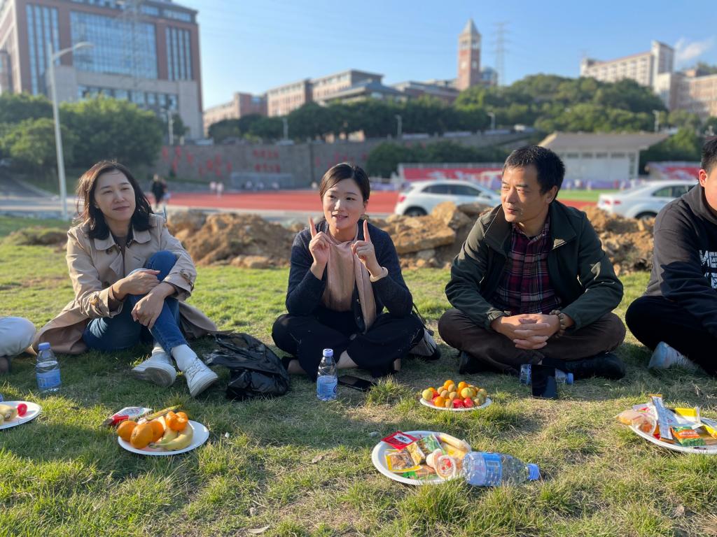 2021年11月12日下午,现代传媒管理公司在操场东侧草坪展开了“情暖工程•席地而坐”现管大家庭座谈会,这是一次别开生面的“坐”谈会。张其春经理、江月英副经理、张斌书记等领导班子、各专业老师、辅导员、员工出席本次座谈会。