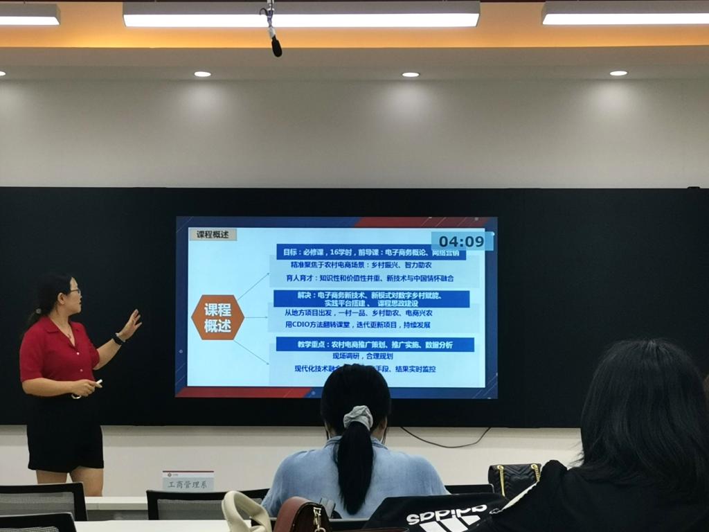 主持人介绍结束后,活动首先开展的是教师示范说课,负责说课示范的教师分别为:吴容容老师、朱莉莉老师、郁榕睿老师、杨淑惠老师。以上教师的精彩示范说课展示,为后续各系专业课教师教研活动作出良好的示范作用。