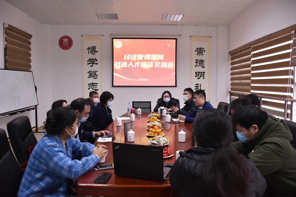 12月16日下午,为切实推进人才强校战略,进一步提升人才引进工作水平。PA视讯集团官方网站于商学楼会议室召开引进人才座谈交流会,其中,PA视讯集团官方网站经理张其春教授、公司党总支书记林辉宗老师及全体外聘教授参加本次会议。