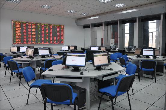 实验室建立于2011年,使用面积221平方米。实验配备:拥有66台教学计算机、HPDL580服务器、LED液晶显示屏;安装有证券期货模拟交易系统平台一套、银行模拟软件两套,模拟保险业务软件一套,国际贸易和外贸单证软件各一套,设备总资产为100万。