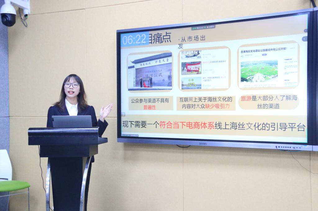 经过开幕式领导致辞的预热,初赛正式开始,赛场上,汇报人热情高涨、专注认真,讲解着各自团队的创意方案,通过PPT内容展现各自团队项目出彩之处,并在路演结束后,各参赛团队进行项目答辩,现场的气氛逐步攀升,在评委老师们的指引下,各小组发掘了更多新思路,有效拓展了同学们的思维,也为参赛选手以后的发展打下一定的基础。最终根据评委们的评分结果,确定本次大赛有6支队伍进入决赛。