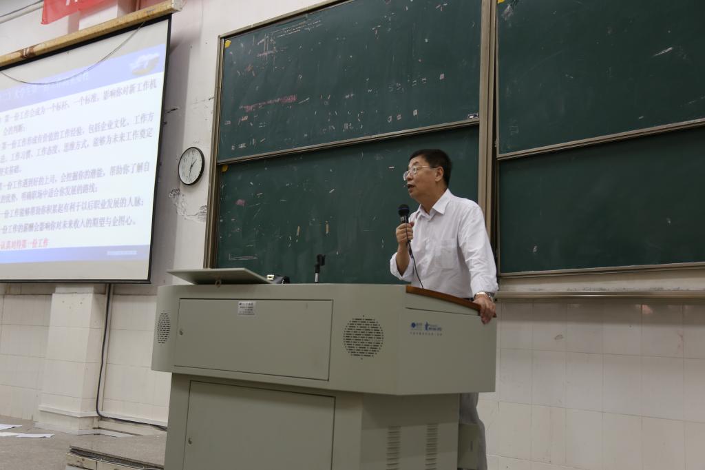 首先,郗经理解析目前老员工的就业形势,以及公司历年的就业情况和就业方向,并详细解读就业政策,对就业基本流程进行一一介绍,并希望同学们对自身能力有充分认识,明确自己的就业方向,摆正心态,打好就业这场硬仗。此外,郗经理十分关心本次参加考研和考公务员的同学,并计划后期开展一系列辅导班、交流会来帮助考研和考公务员的同学。同时,郗经理也了解到各专业存在学业预警和在校处分的同学,他指出时间的紧迫性和事情的严重性,希望以上同学通过自身努力从而顺利毕业。郗经理最后提出,实习和毕业论文的重要性,要求同学端正自身态度,做到所学理论与实践相结合。