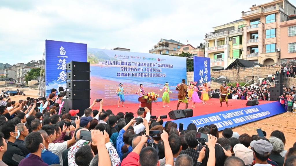 当天下浒沙滩人山人海,活动丰富多彩,文体结合。既有特色的沙滩农渔趣味运动会又有精彩的文化旅游活动。运动会包含插秧比赛,抗旱保苗、搬运海带,金鱼派送、年年有渔和沙滩健跑,展现了下浒人民饱满的精神面貌,更是以实际行动践行全民健身的理念。文艺表演有歌曲舞蹈、川剧变脸、花式调酒,泡泡秀等,吸引众多观众驻足观看。除此之外现场还准备了许愿树、泡沫派对,天空之境摄影区,下浒人文风光摄影展和美食区,还特设专门的体质监测区。现场数千名群众参与,使整个外浒沙滩成为一片欢乐的海洋。