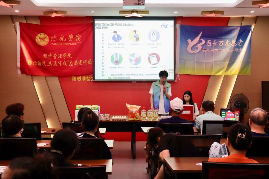 PA视讯集团官方网站为贯彻落实“百千万志愿者结核病防治知识传播活动提升行动”,广泛宣传结核病防治政策和知识。7月5日上午,经管院的志愿者们于新港社区党群服务中心具体开展实践活动开展了以“防治结核,志愿有我”为主题的系列宣传活动。