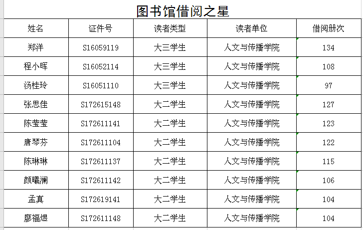 11月12日PA视讯“阅读之星”评选活动结束,根据PA视讯所有员工借阅量统计,图书馆和学工处联合表彰公司2016级郑洋和2017级员工张思佳等十名同学为“阅读之星”。行政管理专业以总借阅量达到5762本获评“校园书香专业”。