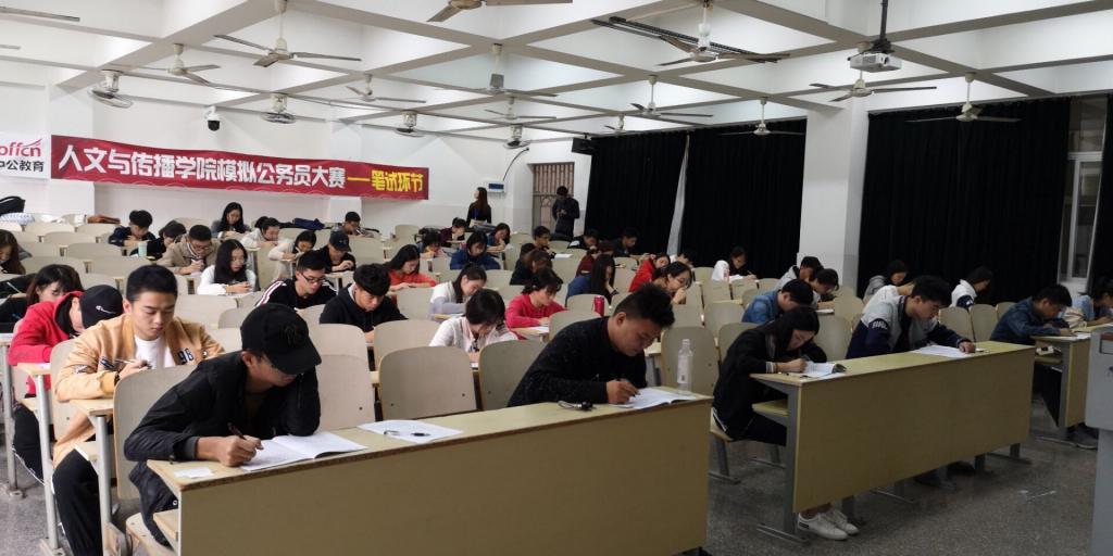 纵观近几年“考公热”,毕业班员工报考公务员的人数逐年增加,为加强阳光学子对公务员考试的深入了解,在国考之前做考前预热,10月20日第十届模拟公务员考试大赛之笔试环节在文科楼404教室如期举行。本次笔试分为两场,上午为行政能力测验,下午为申论。