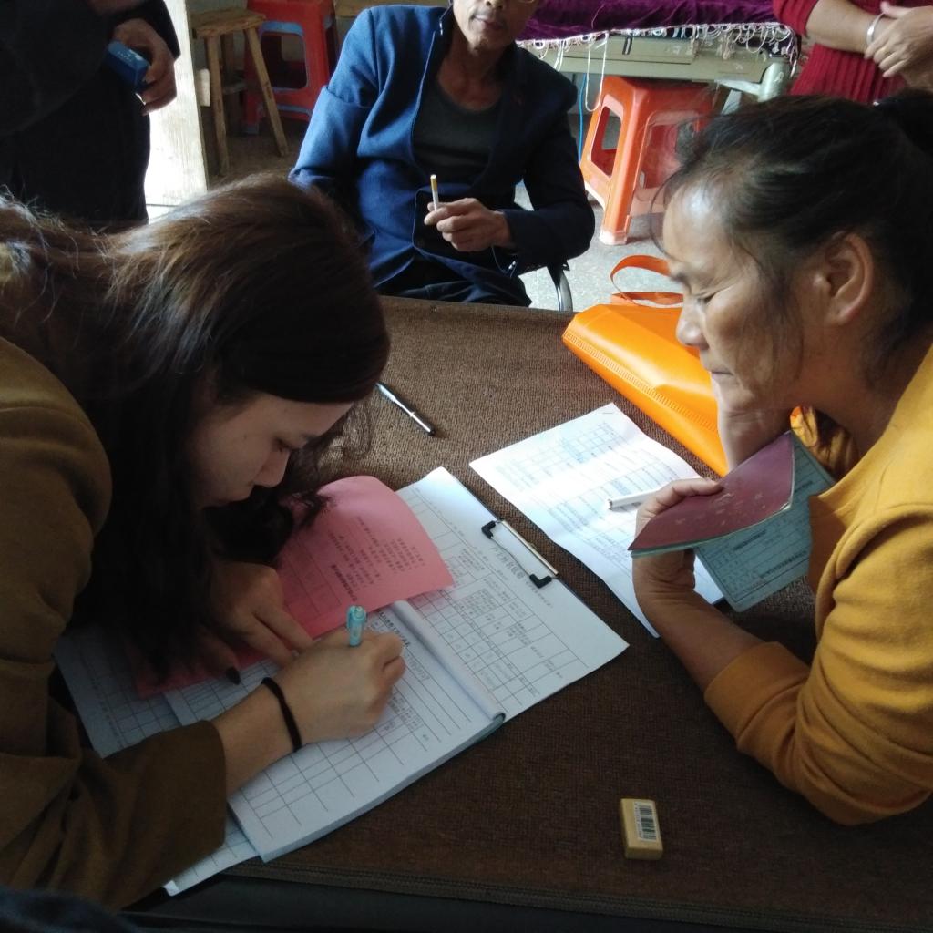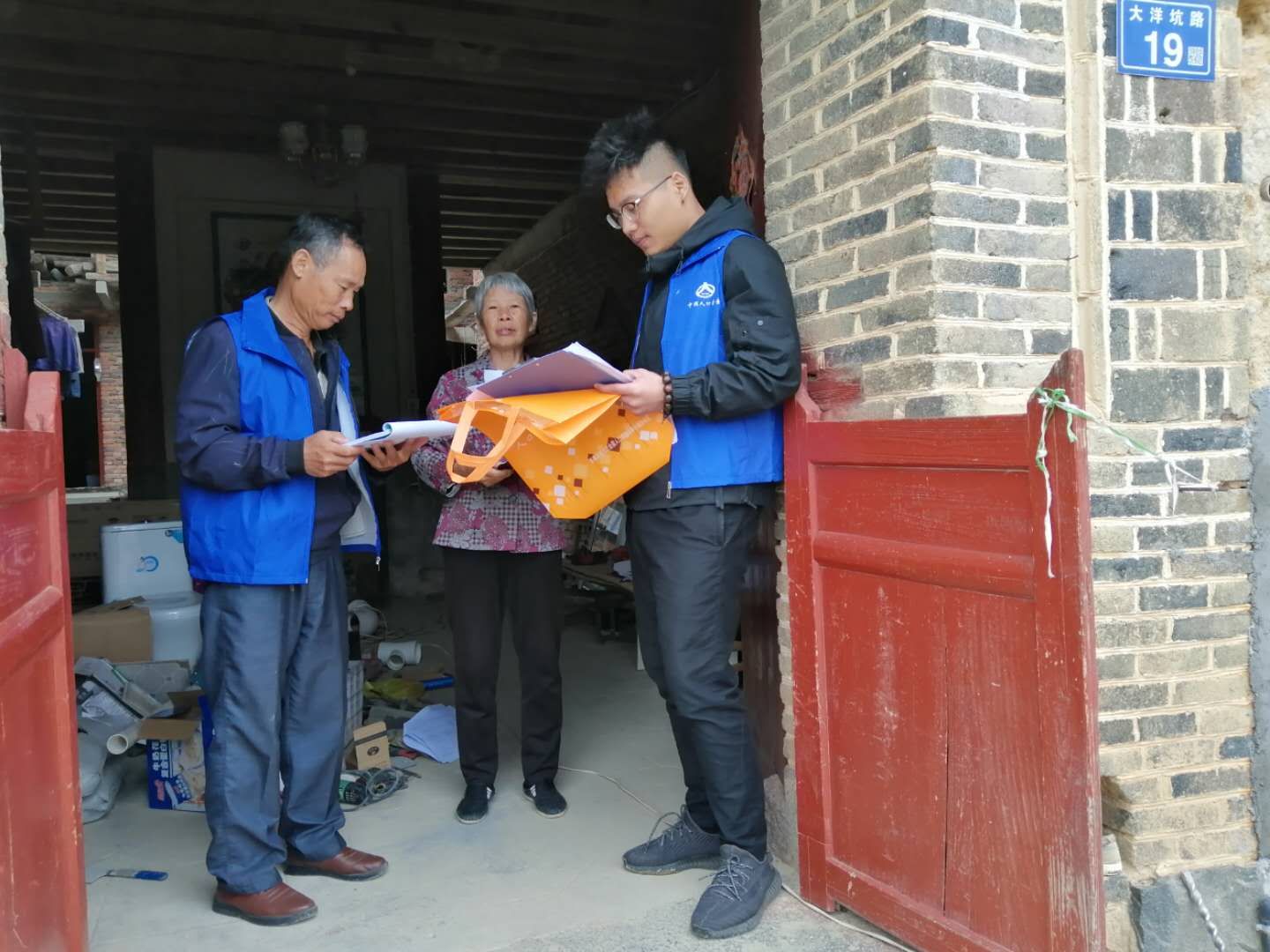 到达第一天,员工们在当地村干部的带领下,了解了长岭村的一些基本情况。次日,员工以良好的精神状态跟随当地普查员的脚步,投入到工作中。在村干部的组织下同学们分成两组,对村里五个自然村进行了逐户走访摸查。期间,员工们在与每一户村民补录信息时,与他们欢快畅谈,仔细倾听认真地记下他们的信息。经过一天的走访,已经基本掌握在村人口情况。17日,员工整理了前一天所收集到的人口信息,并对一些尚未完整的信息再次进行完善。