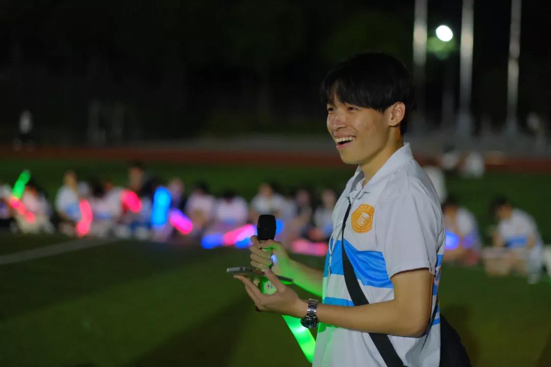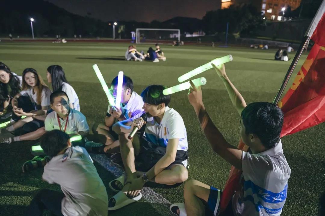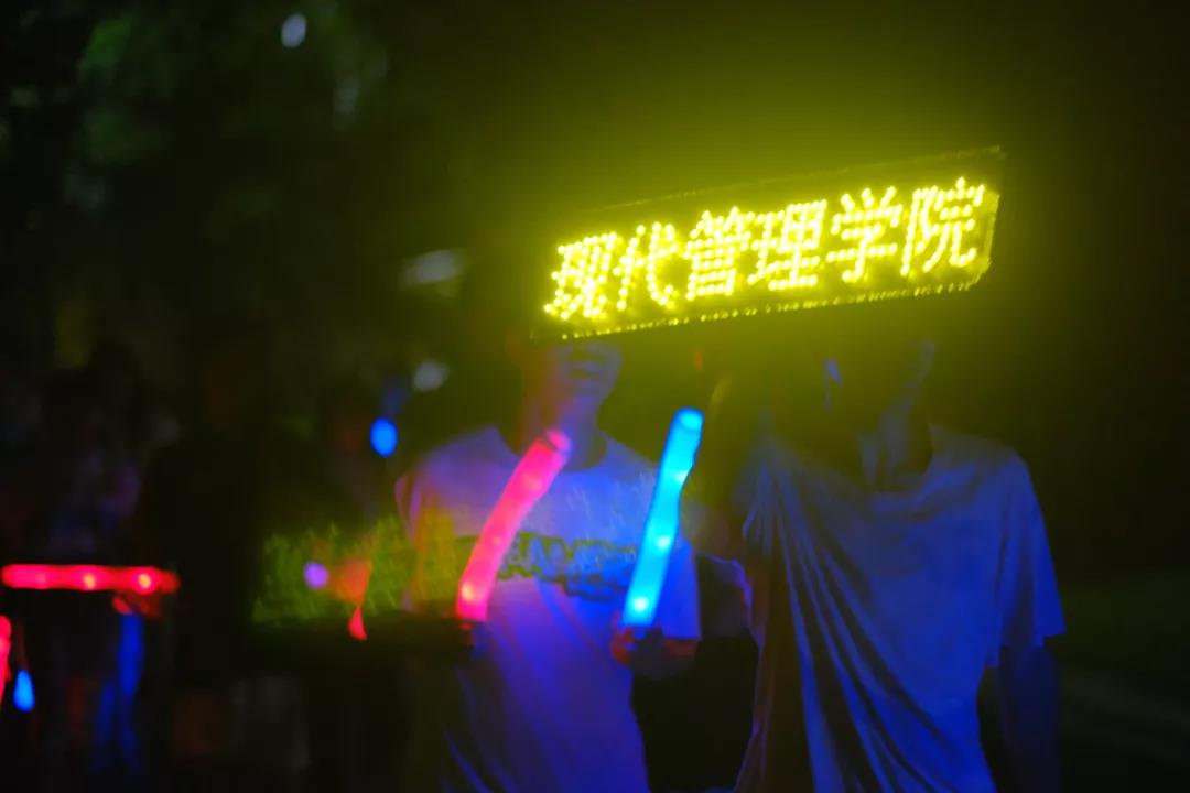 同学们身穿院服,手中挥舞着荧光棒,口中喊着“竞速时代,现管最帅,团结友爱,不可阻碍”激昂口号。虽然融于黑夜,但手中的荧光,照亮了阳光的天空,点燃了大家激进的步伐。看着这些些许稚气却无比坚毅的青春脸庞,看着在黑暗中熠熠生辉的荧光,我们仿佛透过时代,看到了当年五四的火光。