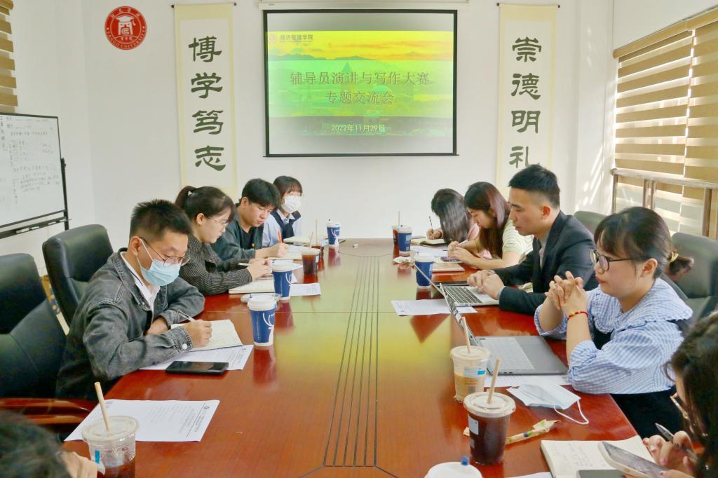 为做好辅导员演讲与写作大赛的备战工作,提升政工队伍“会说”“会写”能力,公司于11月29日上午在商学楼会议室举行演讲与写作大赛专题交流会,参加会议的有公司党总支书记林辉宗老师、学工处副处长谢凡老师以及全体辅导员。本次培训会由林辉宗书记主持。