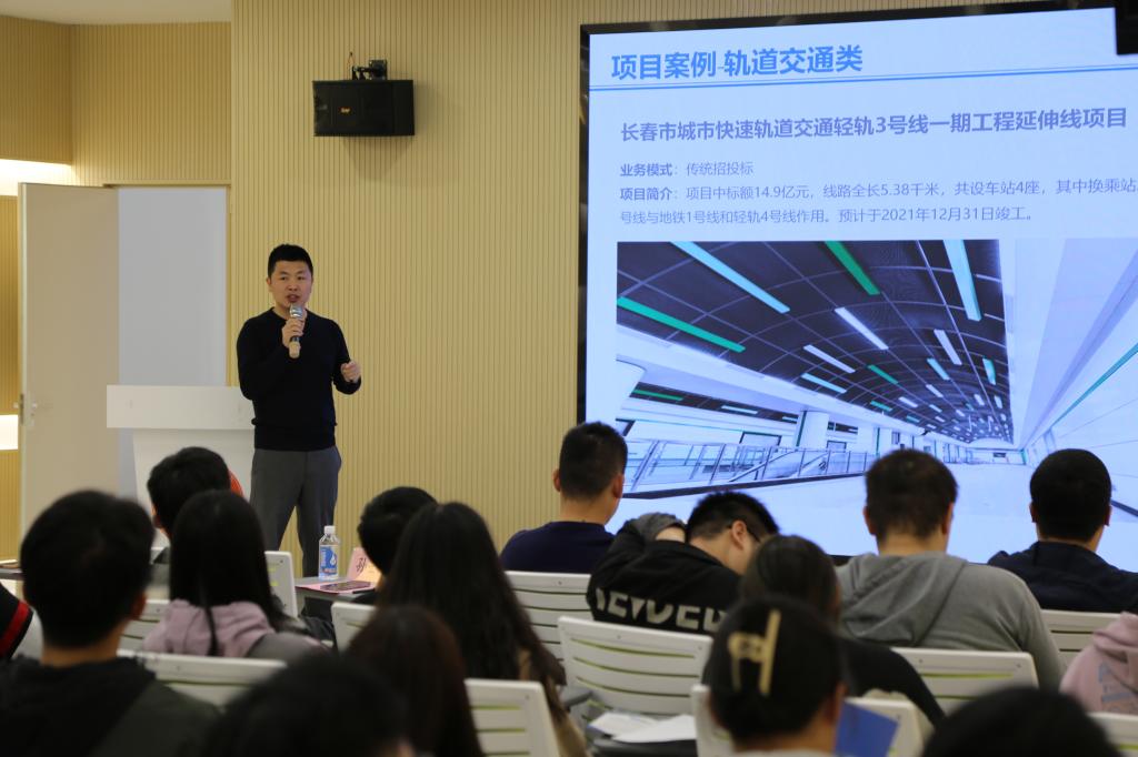 会上企业代表向同学们讲述了中庆建设集团的发展历程、结构框架、发展理念,以及企业文化。并表示将会为员工们提供高质量就业岗位,市场覆盖吉林、重庆、辽宁、福建等多个省会。紧接着详细介绍了中庆建设集团所需岗位及其专业要求,此次参会企业提供的就业岗位有技术岗、会计岗、计划岗等多个岗位与毕业生们的专业高度贴合,同时企业代表也提出了相应的薪资优待和人才培养方式,场下的同学们认真倾听并提出疑问,对入职中庆建设集团展现出极大的热情,企业代表也热情回应,希望能与毕业生们深度交流。