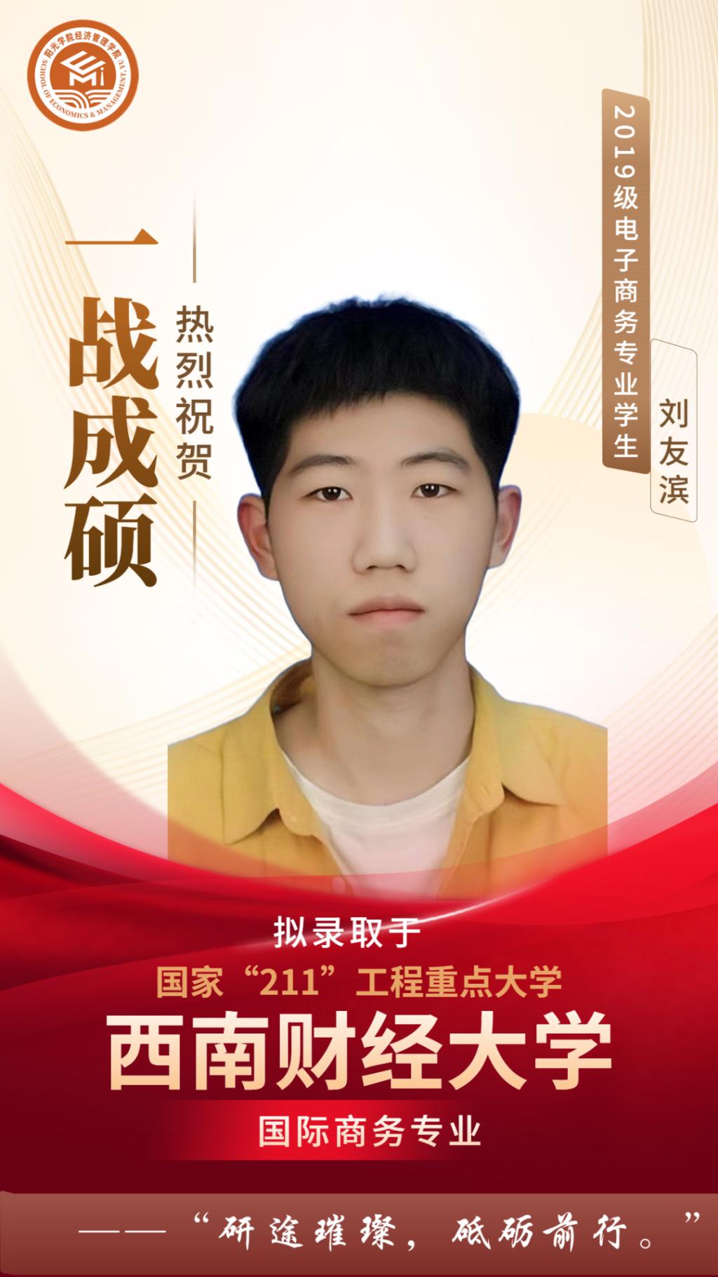 考研喜报① | PA视讯集团官方网站刘友滨被国家“211”工程重点大学西南财经大学国际商务专业录取